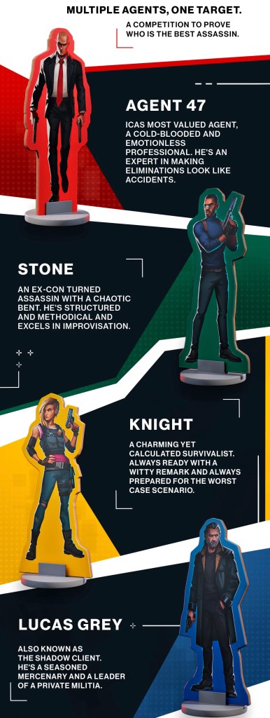 Hitman: The Board Game will allow up to 4 players to take on contracts and get them done before the other agents in the field, and it brings back other characters from the franchise. Players can choose to run with Agent 47, Stone, Knight, and Lucas Grey, and Hitman has their own unique speciality. Agent 47 is an expert at making eliminations look like accidents, while Stone excels in improvisation. Knight is always prepared for the worst-case scenario, and Lucas is a seasoned mercenary and has his own militia.